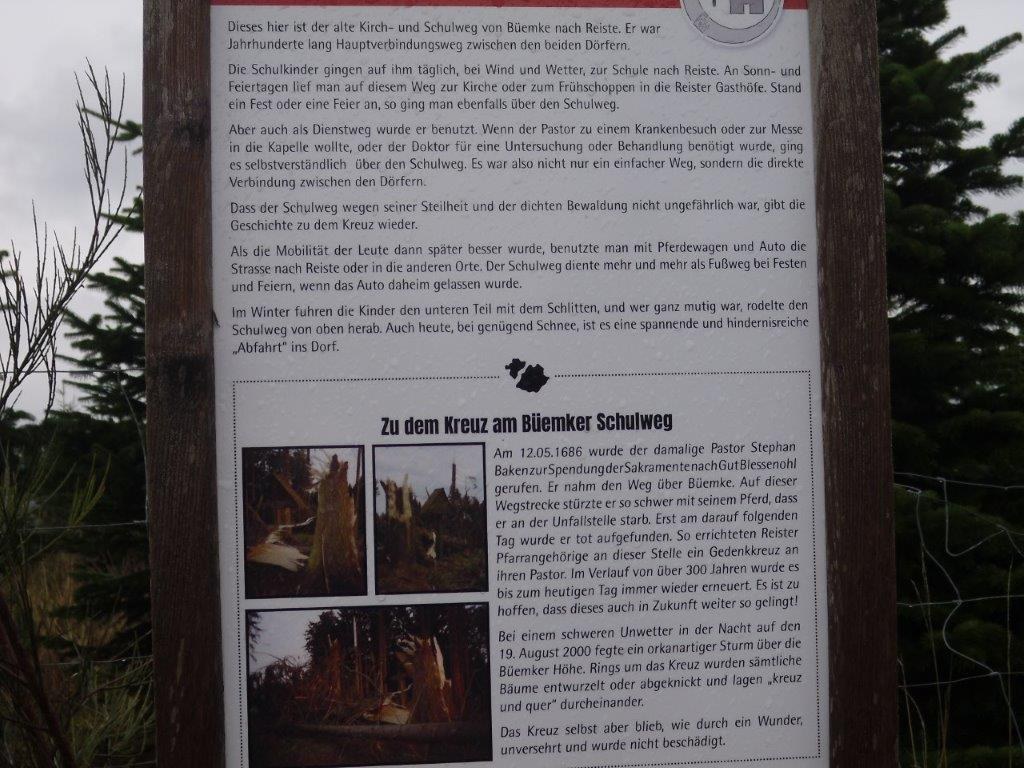Wir haben uns mit 4 Personen in Meschede getroffen und sind in Fahrgemeinschaft zum Reisterberg gefahren. Von dort aus sind wir in Richtung Büemke gewandert. Kurz vor Büemke sind wir über den Wanderweg Höhenflug zurück zum Reisterberg. Wir hatten leider durch Nebel und Regen keine schönen Aussichten. Der Kuchen nach der Wanderung hat deshalb nochmal so gut geschmeckt.