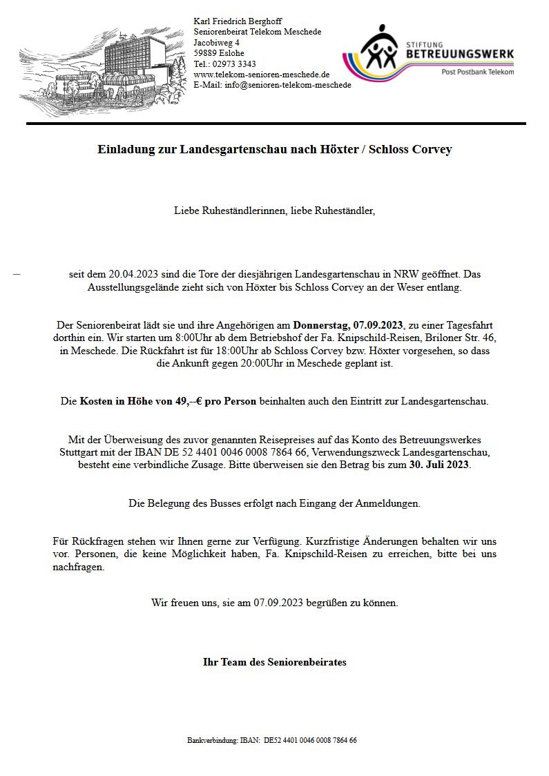 Einladung zur Landesgartenschau nach Höxter / Schloss Corvey
