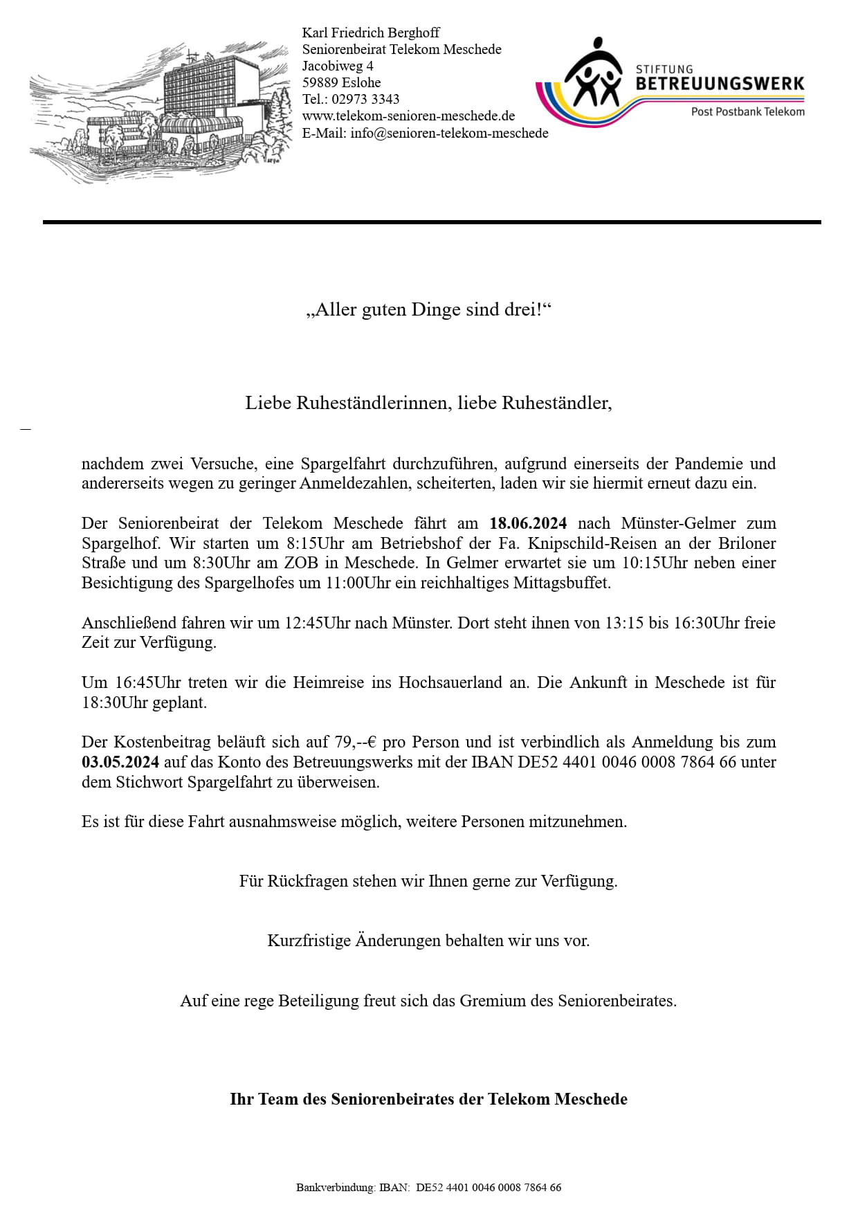 Einladung zur Spargelfahrt nach Rahden, Nähe Münster