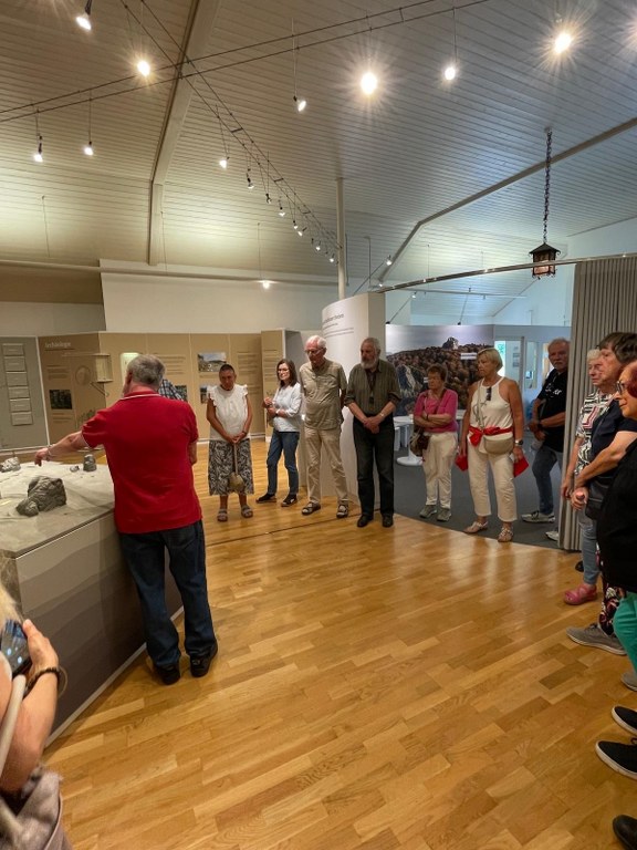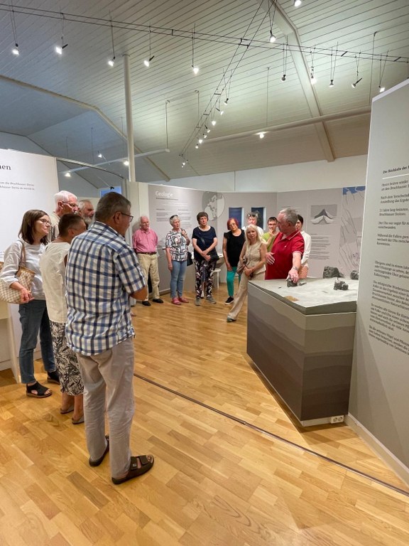 Ihr erstes Ziel war das Info-Center am Fuße der Bruchhauser Steine. Dort wurde die Gruppe vom Naturführer Franz-Josef Klemann erwartet. Geologie, Topographie, Geschichte und Geschichten, über das alles und viel mehr kann Franz-Josef Klemann heiter und sehr sachkundig berichten.