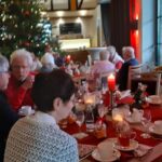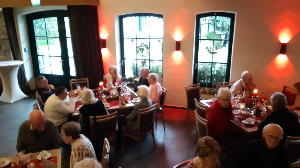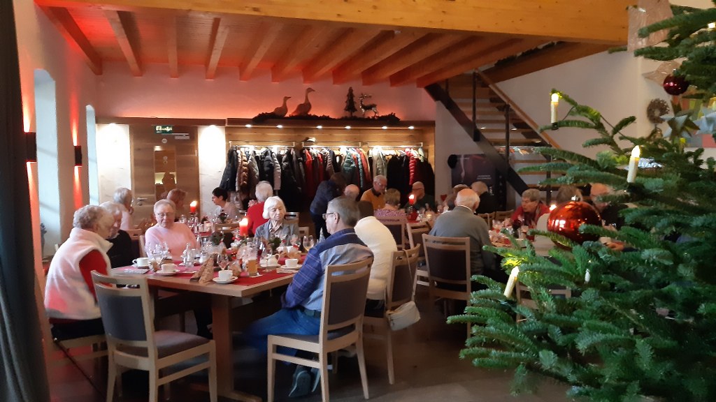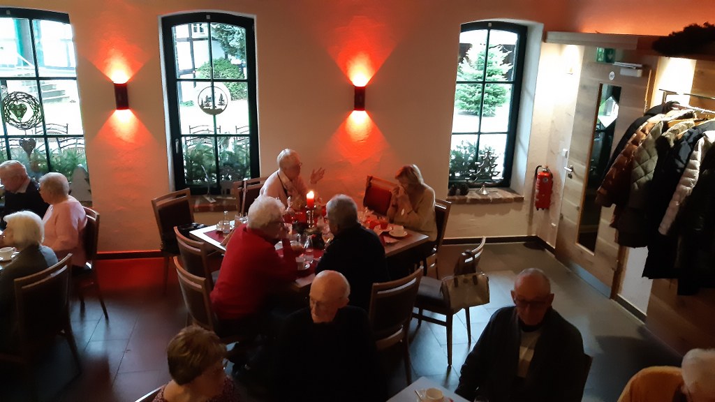 Auch in diesem Jahr waren bei Grewen Mühle in Meschede-Calle die Tische festlich eingedeckt. Zusätzlich sorgte der stattliche, bis auf den Zentimeter genau unter die hohe Zimmerdecke reichende, bunt dekorierte Weihnachtsbaum für eine gemütliche Stimmung. Dazu noch das prasselnde Kaminfeuer. Was wünscht man sich mehr?!