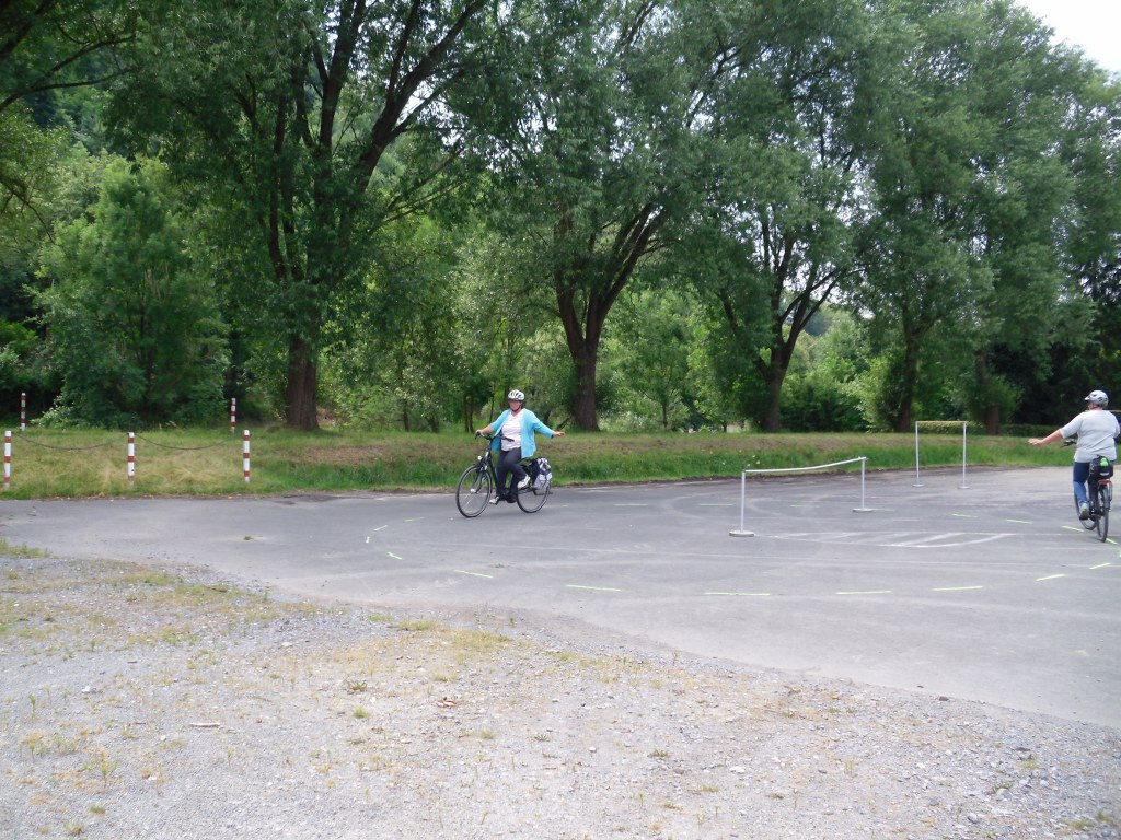 Wir haben uns mit 12 Teilnehmern auf dem Parkplatz des THW Meschede getroffen. Es mussten noch einige Leihräder von der Firma Hegener abgeholt werden. Um 14 Uhr sind die Teilnehmer vom Seniorenbeirat und der Polizei, Herrn Schemme, begrüßt worden. Nach einem kurzen Film über die Gefahren mit dem Fahren eines Pedelecs, ging es nun zu zeigen wie wir mit dem Rad durch einen Parcours fahren. Nach anfänglichen Schwierigkeiten kamen wir mit jeder gefahrenen Runde besser zurecht. Nach ca. 2 Stunden war die Übung zu Ende.