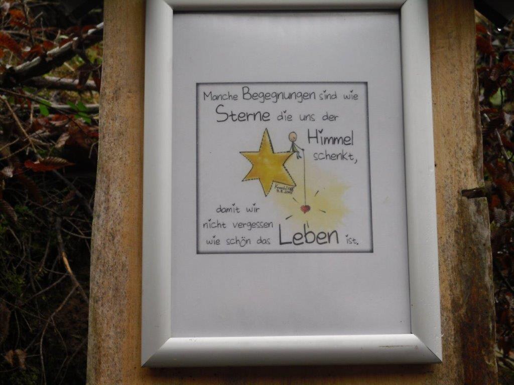 Wir haben uns mit 7 Personen am Schwimmbad in Meschede getroffen und sind in Fahrgemeinschaft nach Arpe gefahren. In Arpe angekommen, sind wir den Adventsweg gewandert. Der Weg ist von der Frauengemeinschaft Arpe wunderschön hergerichtet. An vielen stellen im Wald sind Schilder mit guten Sprüchen aufgestellt. Kurz vor dem Ende des Weges konnte man sich einen Wichtel mitnehmen. In Arpe am Friedhof wird einem erklärt, woher der Flurname Vossel kommt. Zum Abschluss hat uns der Kaffee und Kuchen gut geschmeckt.