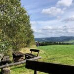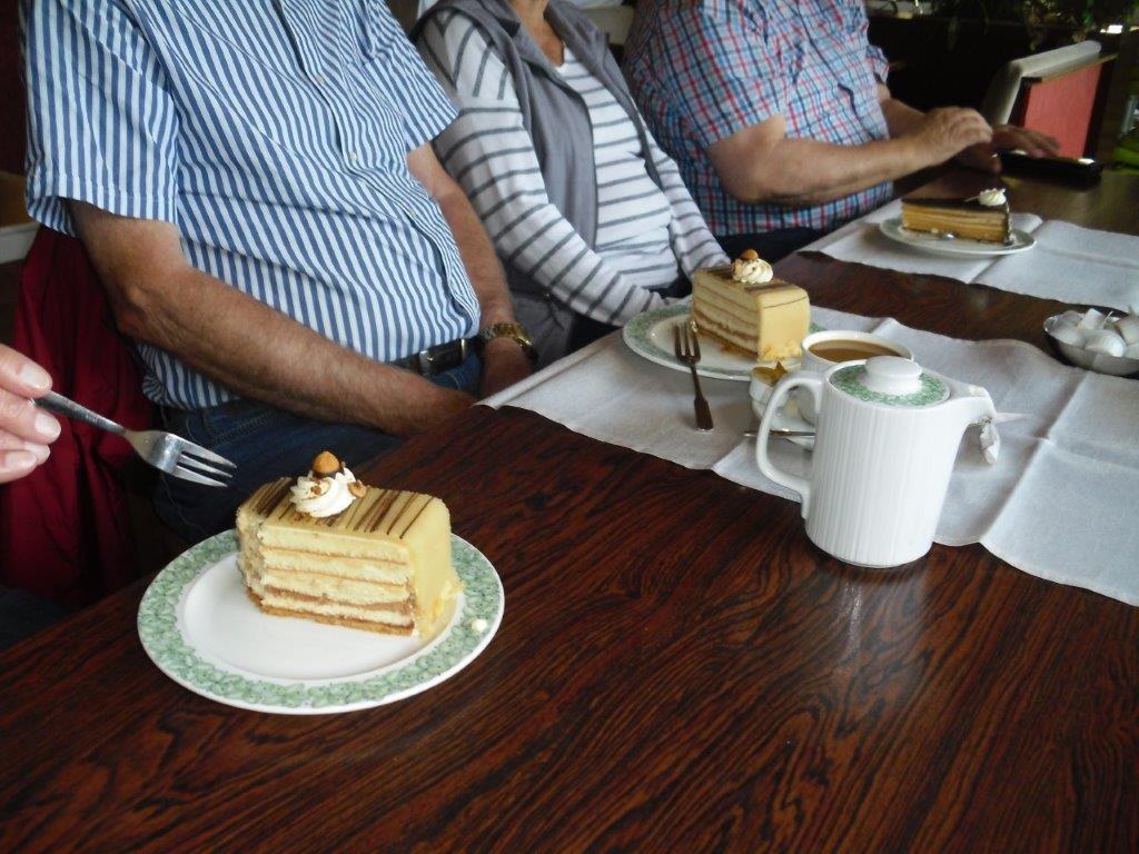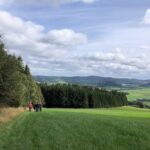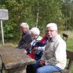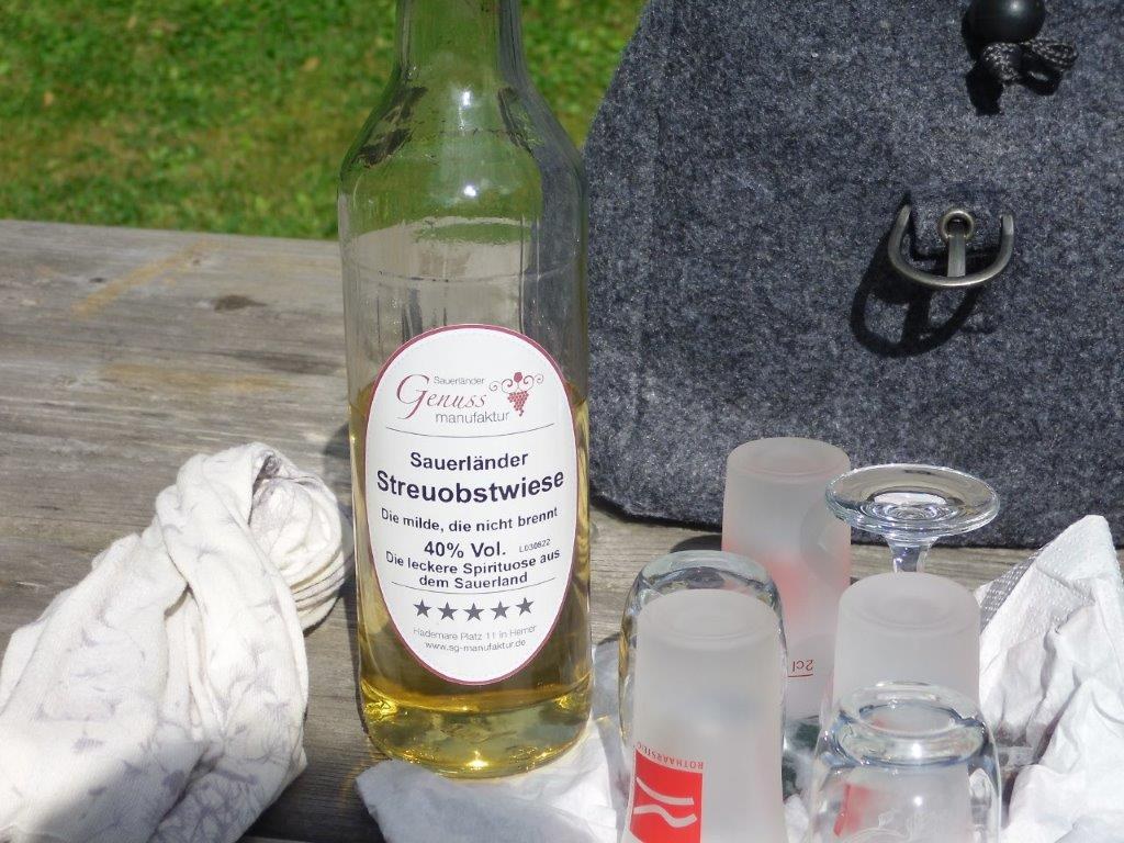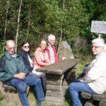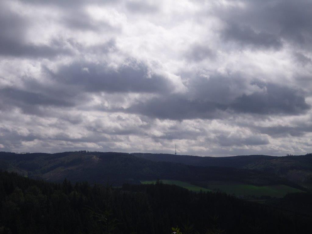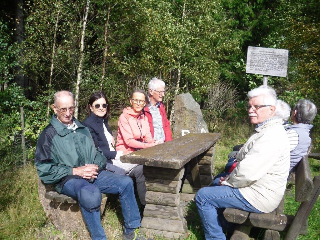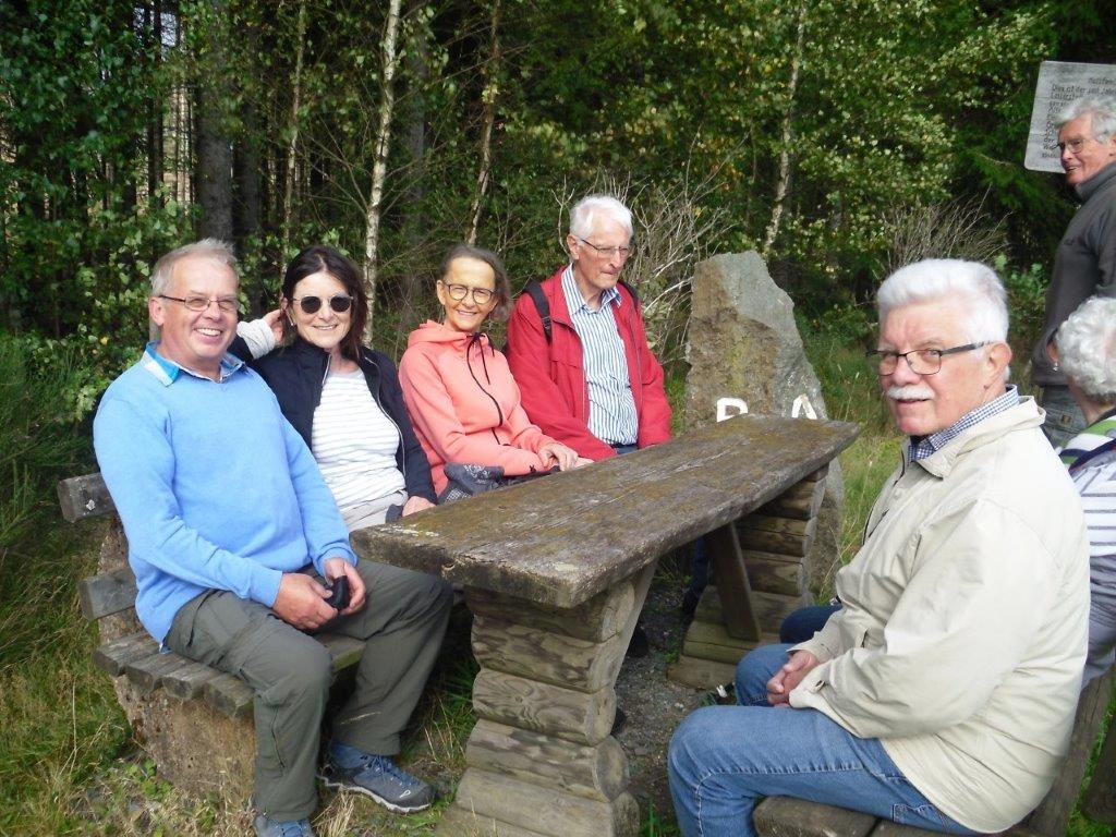 Wir haben uns mit 9 Personen in Meschede getroffen und sind in Fahrgemeinschaft nach Heinrichsdorf zum Dorfgemeinschaftshaus gefahren. Von dort aus sind wir über den Wanderweg E3 zum Leiser Stein gewandert. Auf dem Weg dorthin sah man die Bruchhauser Steine, den Ort Elpe und Siedlinghausen. Am Leiser Stein, auch vier Ländereck genannt, ist die Grenze von der Gemeinde Bestwig , Stadt Olsberg , Stadt Schmallenberg und Stadt Winterberg . Nach einer kurzen Pause sind wir zum Forsthaus Schwabenberg gewandert. Am Forsthaus angekommen erzählte Annette das sie dort aufgewachsen ist und holte ein Getränk aus ihrem Rucksack. Nach der Stärkung sind wir wieder zu unseren Autos gewandert. Der Kaffee und Kuchen hat uns nach der schönen Wanderung gut geschmeckt.