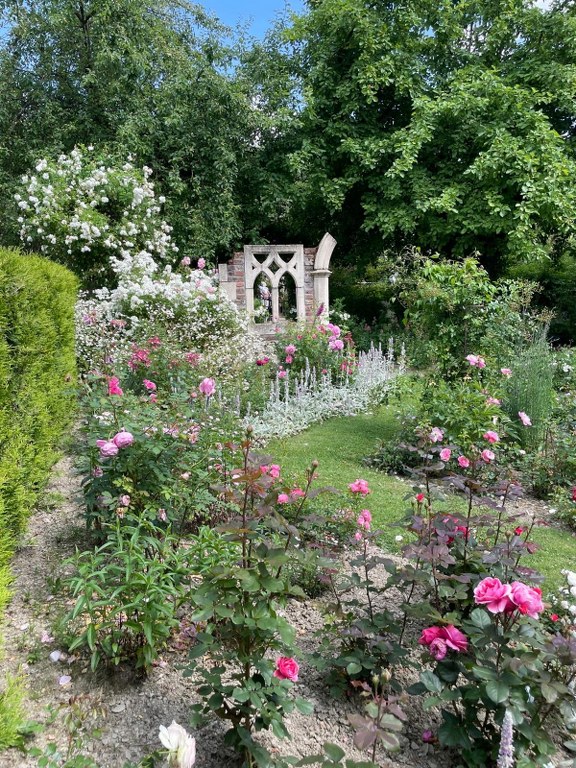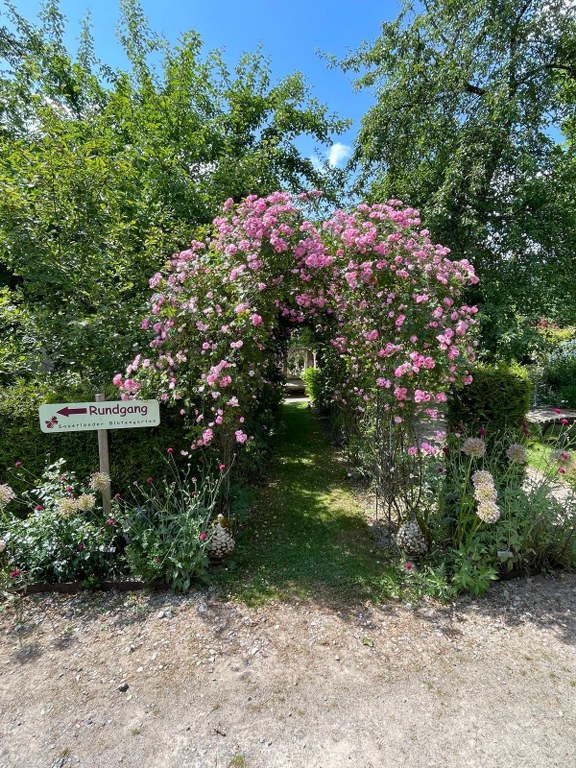 Direkt neben dem Gutscafe und dem Wasserschloss befindet sich das nächste „Highlight“ des Dorfes Bruchhausen: Der Blütengarten. Rosen in allen Farben. Was für eine Pracht!
