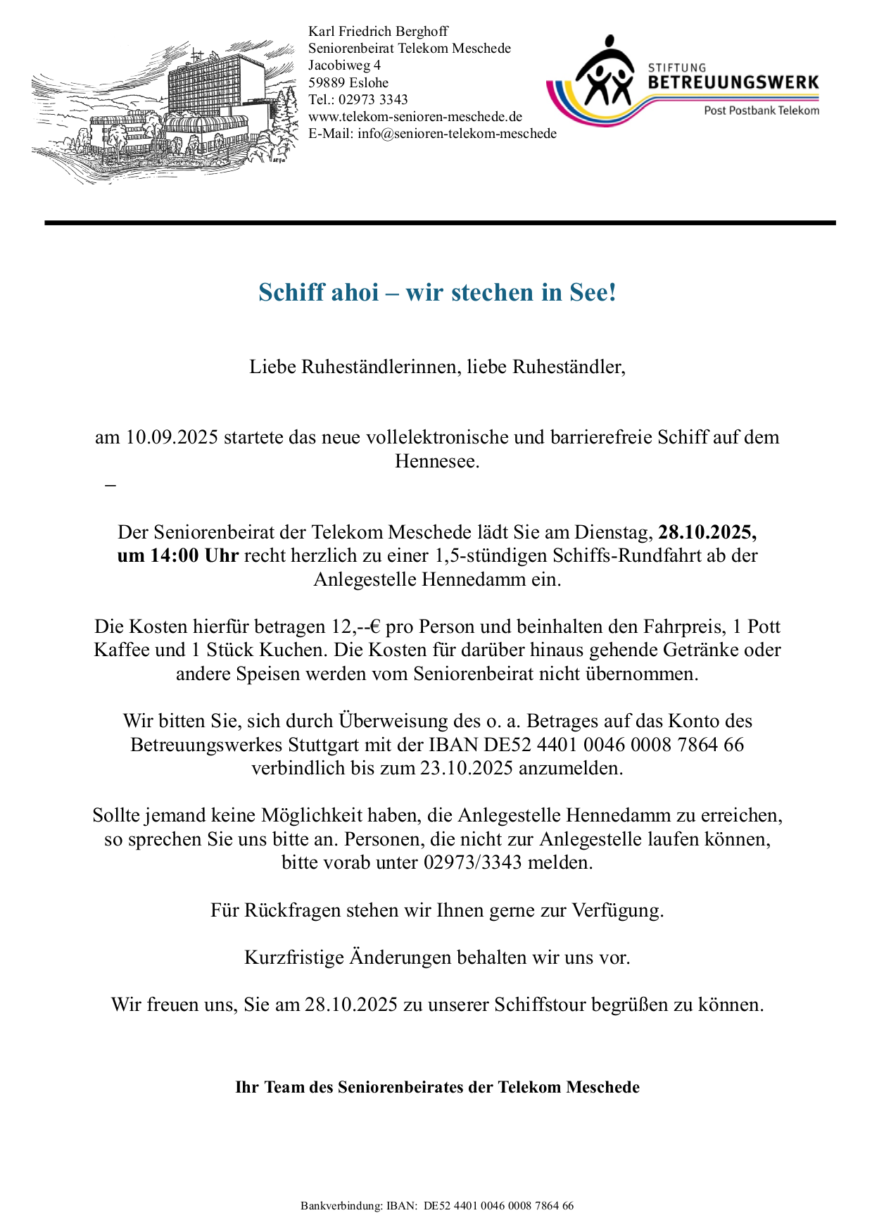 Einladung zur Besichtigung der Hennesee-Staumauer