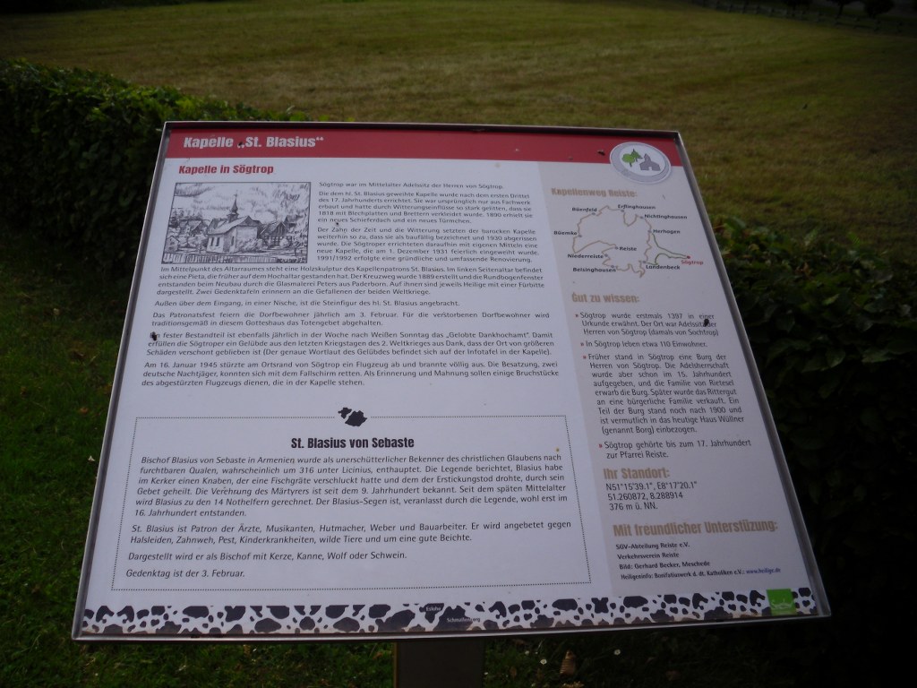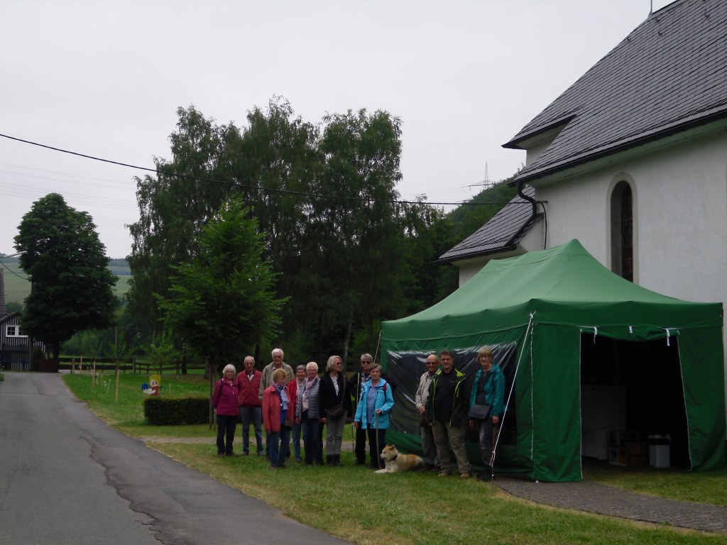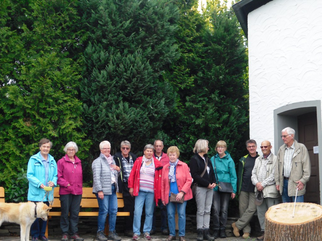 Wir haben uns mit 13 Personen am Schwimmbad in Meschede getroffen und sind dann in Fahrgemeinschaften nach Eslohe-Herhagen gefahren. Von Herhagen nach Landenbeck zur St.Barbara Kapelle über den Reister Kapellenweg gewandert. Auf dem Weg sind wunderschöne Aussichten. Deshalb waren wir sehr langsam unterwegs. Danach weiter von Landenbeck über den Kapellenweg nach Sögtrop.
