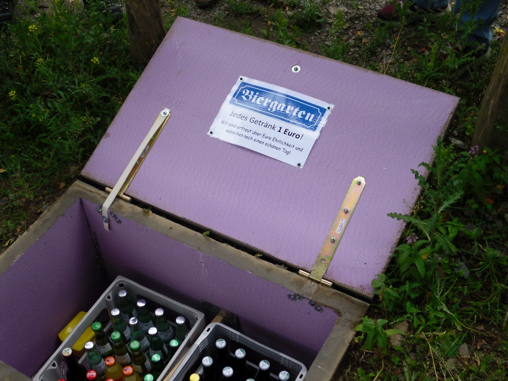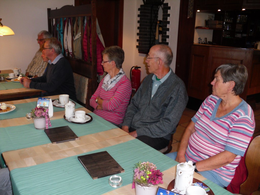 Auf halbem Weg nach Sögtrop bei einer schönen Aussicht ist eine Getränkebox wo wir unseren Durst gelöscht haben. In Sögtrop in der St.Blasius Kapelle wird zur Zeit im Escape-Room das Gelöbnis von Sögtrop gespielt. Da gerade eine Pause war haben wir uns das Spiel von einem Spielleiter zeigen lassen. Im Anschluss haben wir uns Kaffee und Kuchen in Kirchrarbach im Gasthof zur Post schmecken lassen.