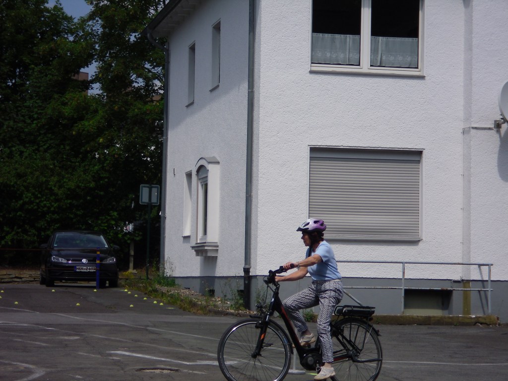 Wir haben uns mit 12 Teilnehmern auf dem Parkplatz des THW Meschede getroffen. Es mussten noch einige Leihräder von der Firma Hegener abgeholt werden. Um 14 Uhr sind die Teilnehmer vom Seniorenbeirat und der Polizei, Herrn Schemme, begrüßt worden. Nach einem kurzen Film über die Gefahren mit dem Fahren eines Pedelecs, ging es nun zu zeigen wie wir mit dem Rad durch einen Parcours fahren. Nach anfänglichen Schwierigkeiten kamen wir mit jeder gefahrenen Runde besser zurecht. Nach ca. 2 Stunden war die Übung zu Ende.